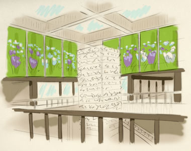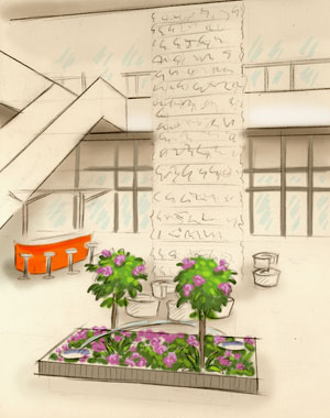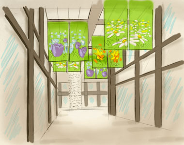 Im Auftrag der Herzblut Werbeagentur entstanden diese Layouts zur Visuali- sierung der Frühjahrsdeko- ration der Friedrichstadt- passage Quartier 205.