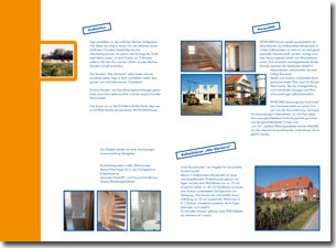 Die Innenseiten der Imagebroschüre beschreiben Bauablauf sowie Ausstattung der Hausobjekte.