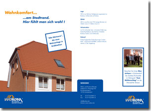Für den Bauträger WOKOM wurde ein vierseitiger Folder entwickelt, der in kurzen und klaren Fakten das Bauunternehmen beschreibt.